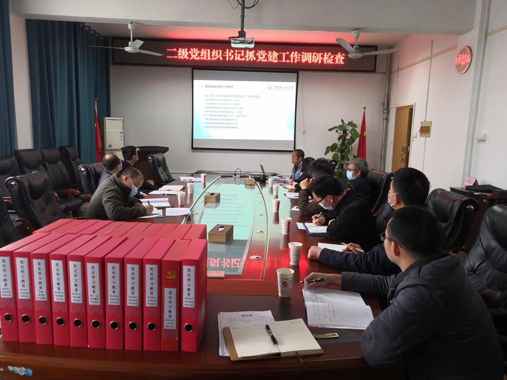12月8日下午,学校党委组织部部长唐壮东、党办(校办)副主任朱怀森、党委党校办公室主任郝佳佳一行三人到学院开展二级党组织书记抓党建工作专项调研监督检查。学院全体党委委员参加。
