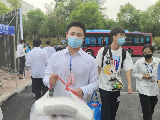 本科新生报到工作在雁山校区有序开展。为保障新生报到流程顺畅进行,全体辅导员、2022级各班班主任、党员志愿者、学生会志愿者早早来到迎新现场,准备口罩、测温计等必备防疫物资,提前布置报到现场,熟悉报到流程。疫情之下的迎新现场简约而不简单、有序而不失温情。可爱的吉祥物“材材”、网红打卡竖牌“我在beats365亚洲版很想你”等都出现在新生与学院的第一张合影中。12日上午,学院领导来到现场关心新生报到情况。学院党委书记梁军、院长龙飞与报到新生深入交谈,他们亲切地问候同学们来自那里,询问饭菜是否合口、住宿是否习惯等生活问题。同时,梁军书记强调材料专业之于整个社会生活的重要性,鼓励同学们奋发向上,朝气蓬勃,勇攀高峰,实现自我人生价值,融入到服务国家建设、服务人民的行列中去,争做担当民族伟大复兴重任的时代新人。与此同时,屏风校区研究生迎新工作同步开展。学院研究生辅导员、研究生会志愿者、党员志愿者主动帮助新生搬运行李、指引路线、发放资料。12日下午,学院党委书记梁军,院长龙飞,副书记、副院长到现场了解新生报道情况,并与新生亲切交流。