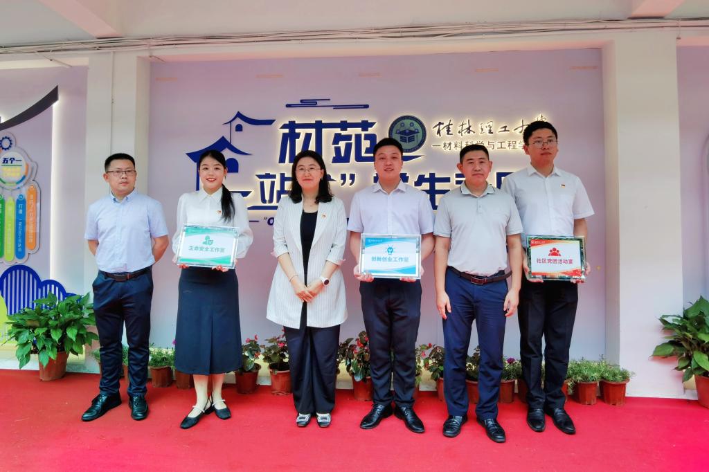 学校党委始终坚持“共建共治共享”的建设理念,着力打造具有桂工特色、契合“三全育人”“五育并举”要求且贴近学生实际的新时代“一站式”学生社区。材苑“一站式”学生社区是我校屏风校区第一个“一站式”学生社区,占地面积约300m2,设有“一站式”学生服务大厅、思政大讲堂、创新创业工作室、党团活动室、生命安全工作室、多功能研讨区、24小时自习区、休闲区等,辐射15栋学生宿舍楼,服务屏风校区全部的本科生、研究生和留学生,惠及师生约8000人。
