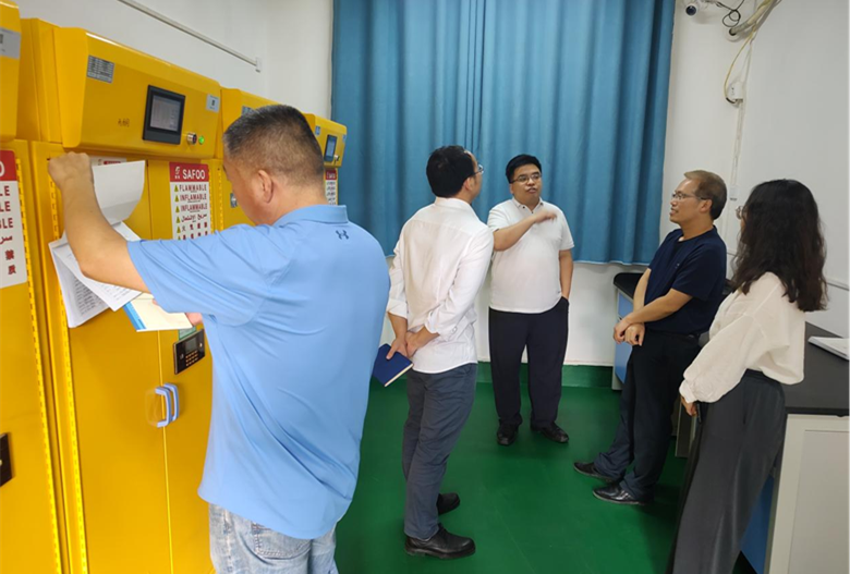 会后刘远立副主任和黄孝华副院长带领老师们对易制毒试剂室、材料成型与加工实验室、教九楼9605虚拟仿真机房等部分实验室进行了安全大检查。