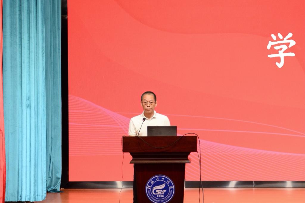 学院党委书记梁军首先致辞,他围绕“团结、诚信、感恩、责任”四个关键词,勉励新生在科研道路上既要追求真理、勇于创新,又要恪守学术道德、常怀感恩之心,将个人成长与国家材料事业发展紧密结合。学院院长周焕福通过详实的数据和案例,全面介绍了学院自1997年创办以来的发展历程、学科布局、师资队伍和科研平台建设情况,重点展示了学院在有色金属、光电材料等领域的特色优势以及在服务地方经济方面取得的突出成果。副院长张瑞则详细解读了研究生培养方案、学位授予标准及学术支持体系,为新生规划学习生涯提供了清晰指引。