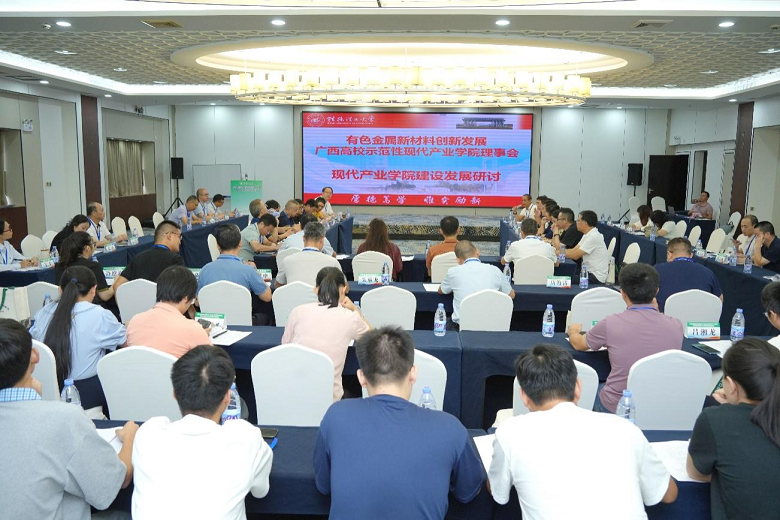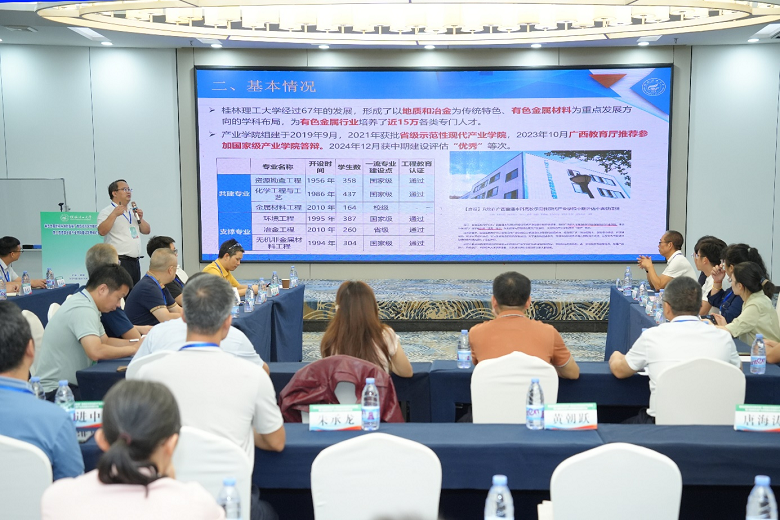 在现代产业学院建设发展研讨会上,与会代表围绕“加强校企深度合作,找准互惠共赢点”、“谋划推动学院与广西关键金属产业链深度融合发展”、“聚焦聚力,支撑材料与化工专业博士点建设”、“打造‘厂中校’人才培养新模式”、“推进有色金属虚拟仿真VR教学改革”、“加强产教融合AI课程/教材建设”等5个方面内容,进行了专题研讨和深入交流。