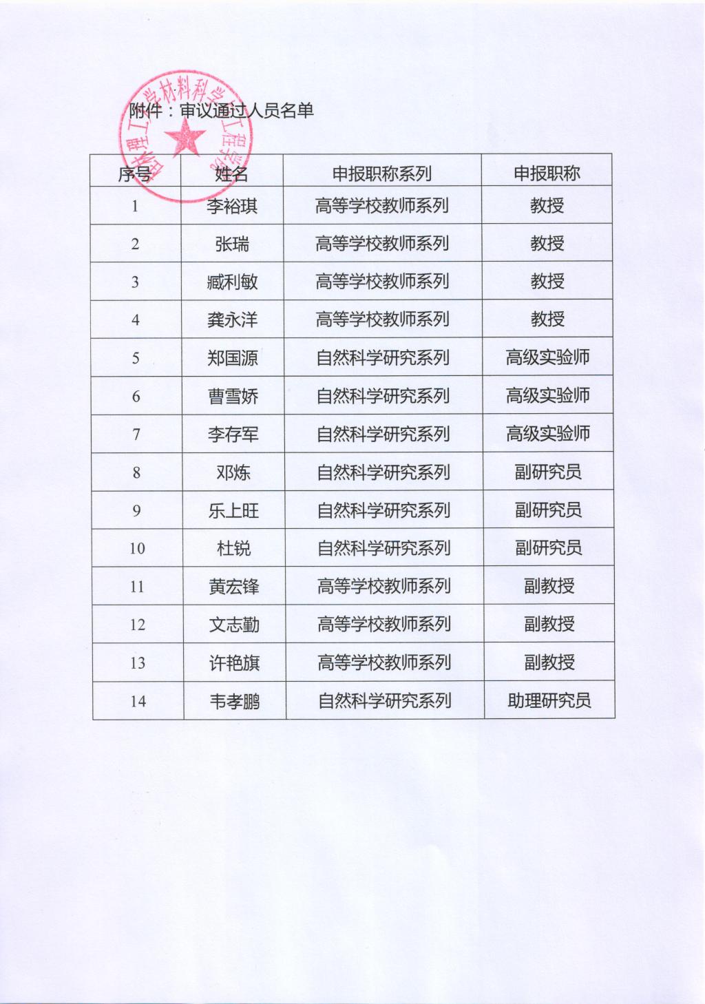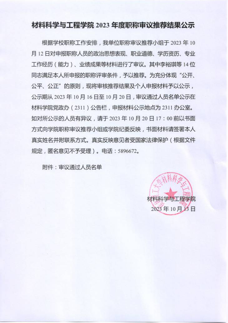 材料科学与工程学院2023年度职称审议推荐结果公示