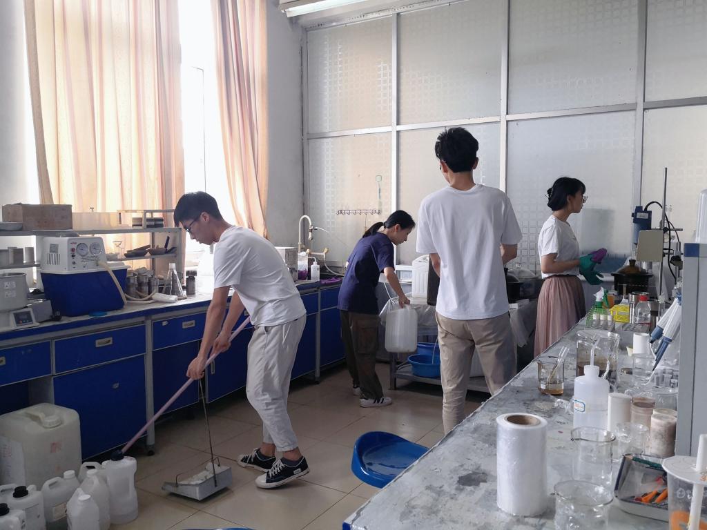 在清洁活动中,大家合理地分配任务,以极大的热情投入到实验室的大清整和安全隐患排查中去。毕业生党员把实验室内的每一处角落、缝隙进行彻底的打扫干净,对各类设备仪器小心翼翼地分类并按照要求清洗干净,对设备需要维修的地方做好标记和登记。