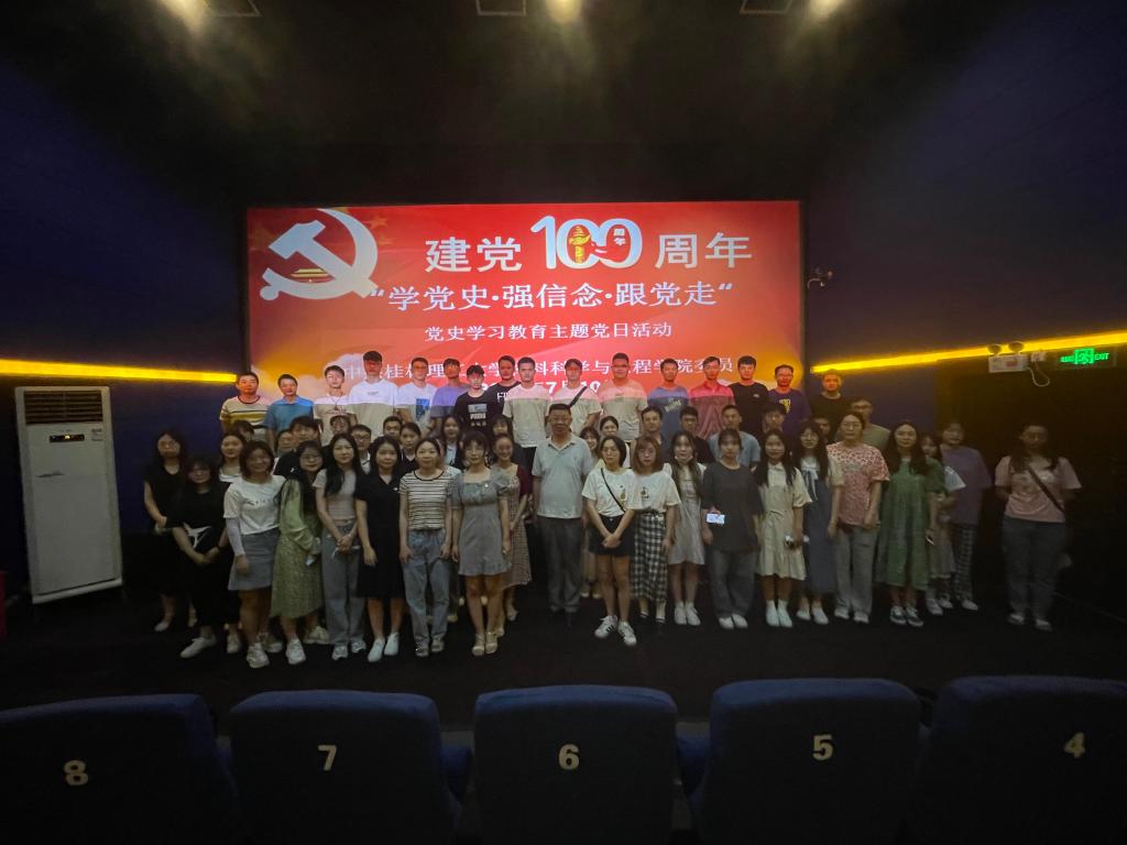 为深入开展党史学习教育,庆祝中国共产党成立100周年。7月10日上午,学院组织师生党员到桂林电影院开展“学党史・强信念・跟党走”党史学习教育,集中观看电影《1921》。