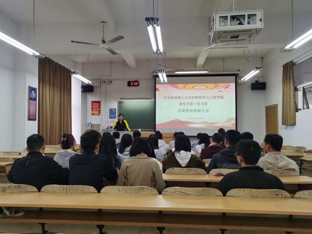 2021年10月13日,学院研究生第三党支部换届大会在9203教室顺利召开。会议由支部副书记赵含同志主持,支部书记张娅同志以及支部全体成员参加。