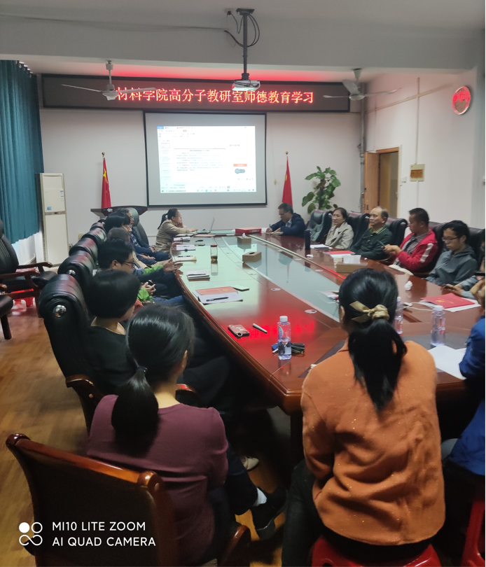 10月14日下午,学院教工三支部在2308会议室召开组织生活会,主题为结合我院高分子材料与工程专业实际情况,开展师德教育学习。