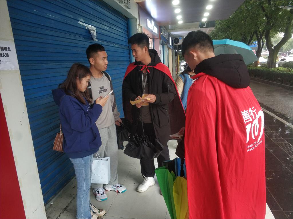 在劝募活动中,大家在寒风细雨中奔走,向行人介绍善行100志愿活动,给欠发达地区的孩子送去温暖,帮助更多贫困地区儿童圆梦,助力乡村振兴。