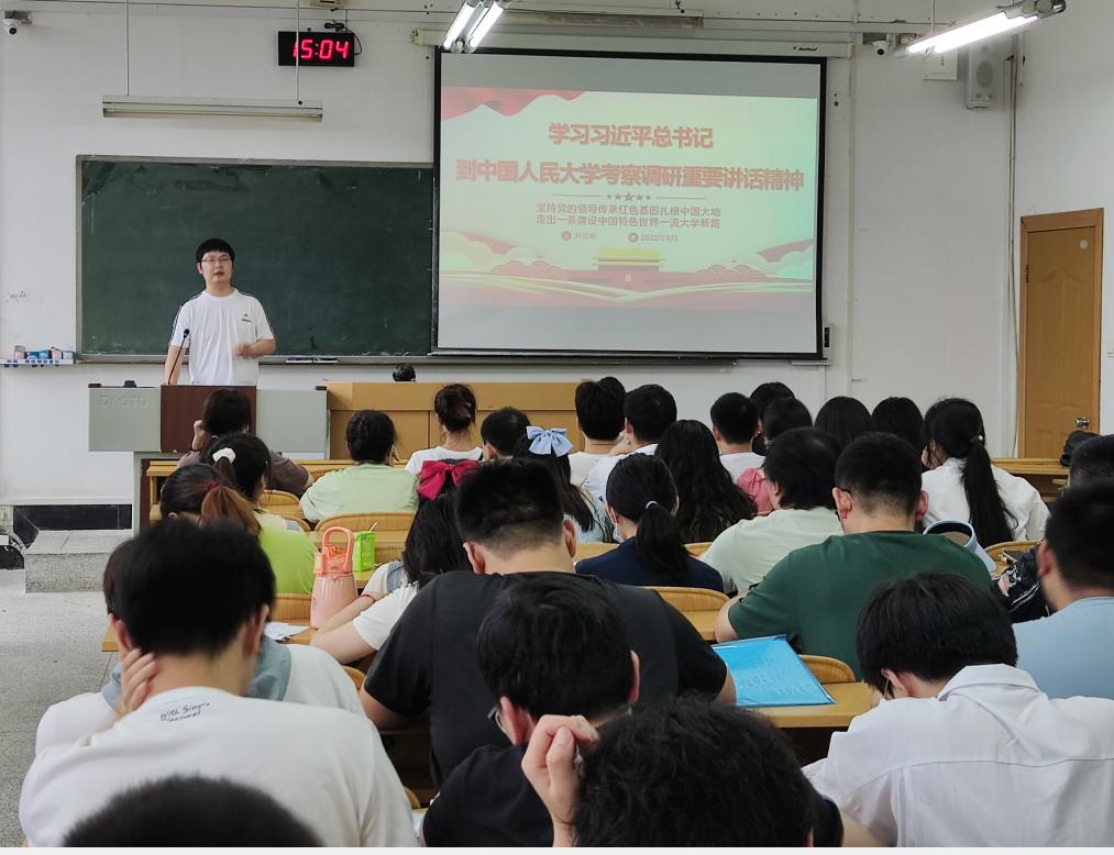 在五四青年节即将到来之际,习近平总书记在4月25日上午来到中国人民大学考察调研,在全国上下引起了广大青年的热烈反响。2022年6月17日,研究生第三党支部在9113教室召开深入学习习近平总书记到中国人民大学考察调研重要讲话精神的党课。党课由支部书记尹贤彬老师讲解,全体党员以及入党积极分子参加。
