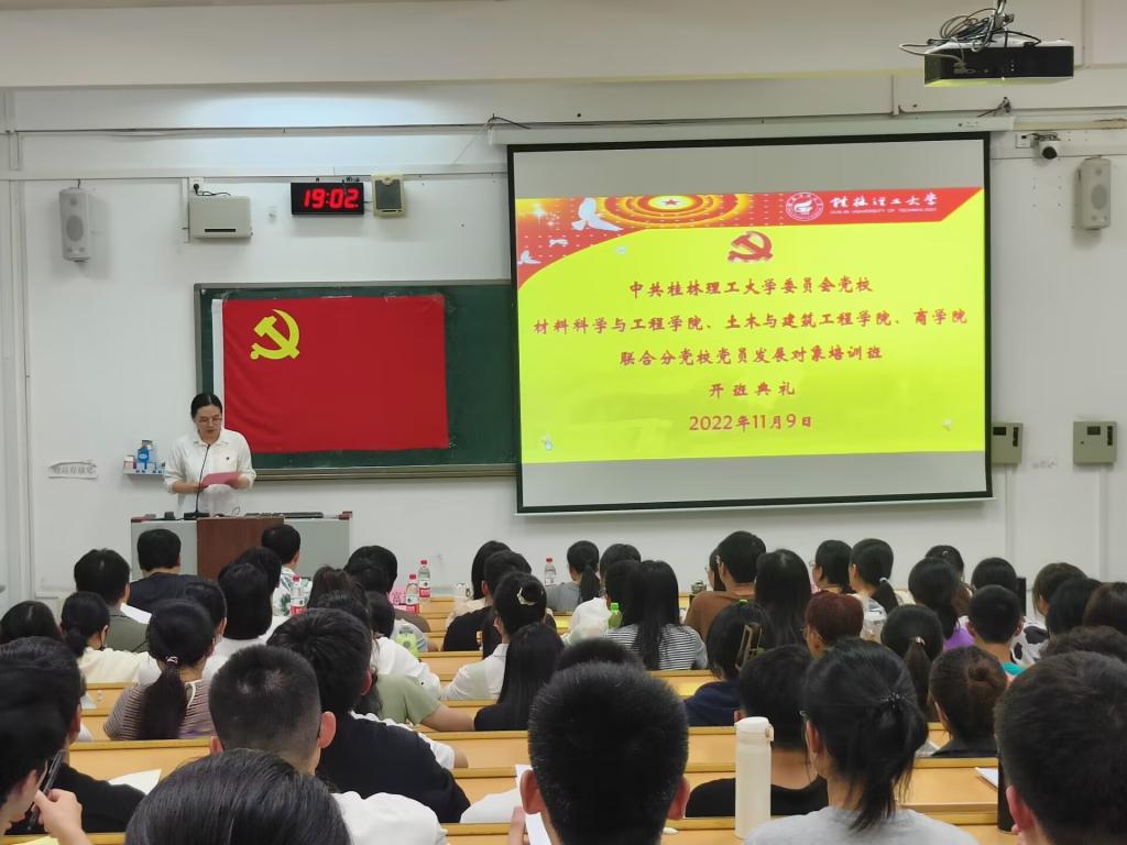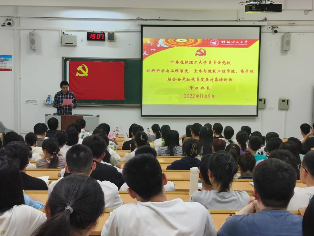 为深入学习贯彻习近平新时代中国特色社会主义思想和党的二十大精神,切实提高党员发展质量。11月9日晚,材料科学与工程学院、土木与建筑工程学院、商学院联合分党校2022年秋季学期党员发展对象培训班开班典礼在屏风校区9607教室顺利举行。土木与建筑工程学院分党校副校长、学院党委副书记唐丽华同志,材料科学与工程学院分党校教务员李俊俊同志,商学院分党校教务员庞如雪同志以及162名党员发展对象参加了本次培训班开班典礼,开班典礼由材料科学与工程学院分党校教务员李俊俊同志主持。