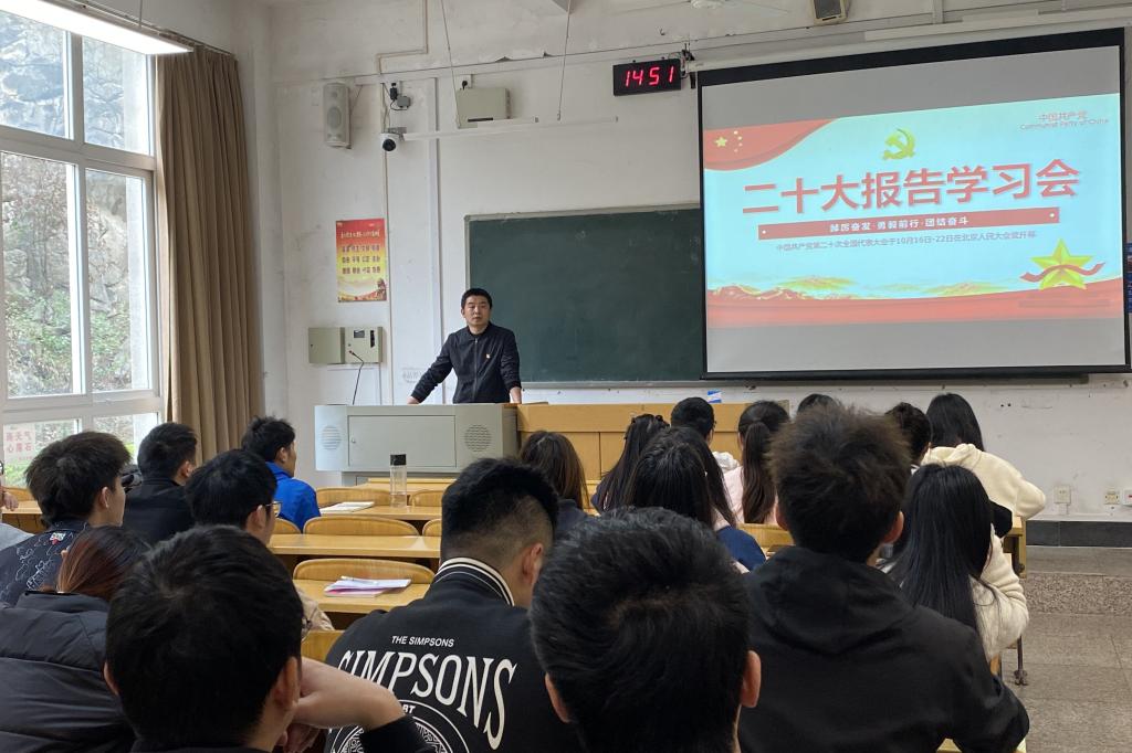 为深入学习贯彻习近平新时代中国特色社会主义思想和党的二十大精神,深刻领悟“两个确立”的决定性意义,增强“四个意识”、坚定“四个自信”、做到“两个维护”。3月14日下午,学院研究生第三党支部书记李俊俊在9108教室为支部党员讲学习贯彻党的二十大精神专题党课,党支部全体党员参加。