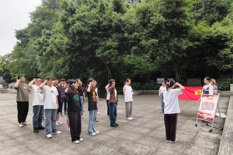 缅怀革命英烈,重温入党誓词。仪式结束后,全体党员在烈士纪念碑前面向党旗,重温入党誓词,铿锵有力的誓言展现出不忘初心、牢记使命的信心和决心。松柏常青,烈士英名流芳千古,坚定的誓言将久久回荡在纪念碑前。