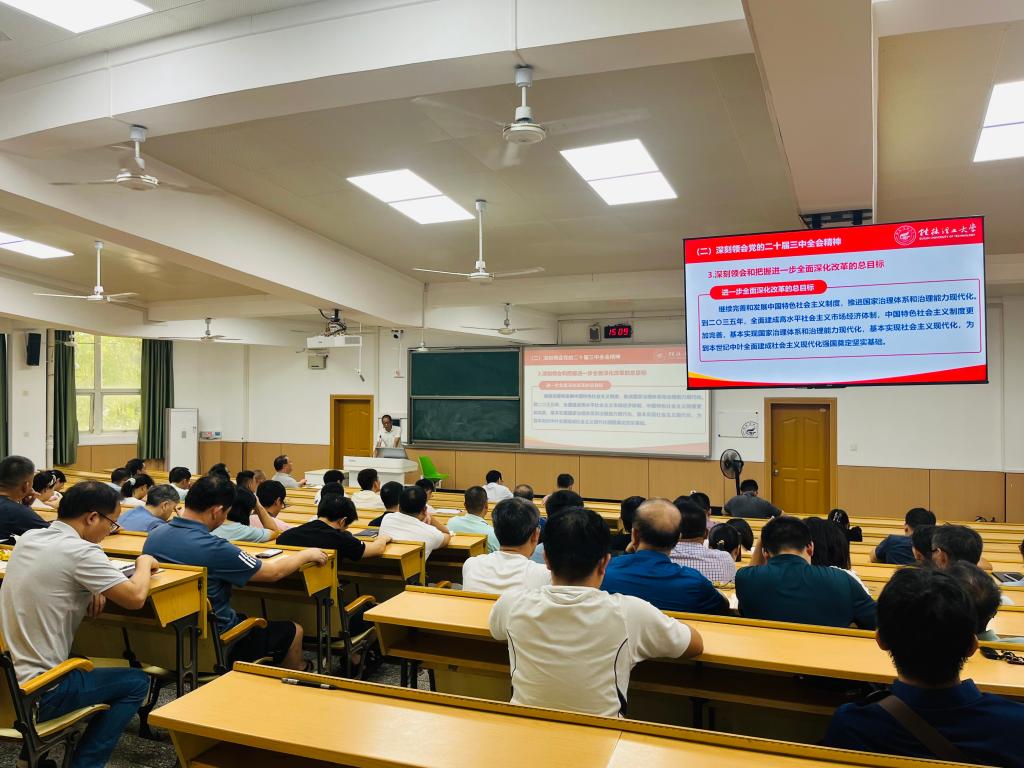 为深入学习贯彻习近平新时代中国特色社会主义思想,认真落实党的二十大和党的二十届一中、二中、三中全会精神。9月6日下午,学院党委书记梁军在9201教室为学院教职工讲授题为《深刻领会学习党的二十届三中全会精神》专题党课,学院全体教职工参加学习。
