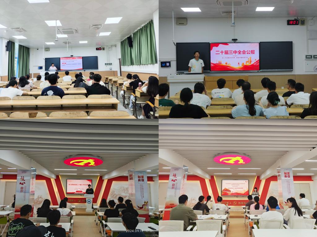 为深入学习贯彻习近平新时代中国特色社会主义思想,认真落实党的二十大和二十届一中、二中、三中全会精神,了解党的二十届三中全会召开的背景、重大意义、进一步全面深化改革的指导思想、总目标和重大原则等内容,不断增强坚定拥护“两个确立”、坚决做到“两个维护”的思想自觉、政治自觉和行动自觉。9月11日-19日,学院党委下设的14个师生党支部集中开展党的二十届三中全会精神学习会,将党的二十届三中全会精神作为支部大会、支委会、党小组会及其它党内重要会议的学习内容,夯实党支部的政治功能和组织功能,奋力推动学院事业加快高质量发展。
