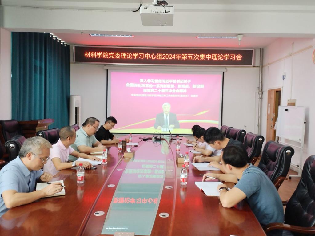 为深入学习贯彻习近平新时代中国特色社会主义思想,认真落实党的二十大和二十届一中、二中、三中全会精神,了解党的二十届三中全会召开的背景、重大意义、进一步全面深化改革的指导思想、总目标和重大原则等内容,不断增强坚定拥护“两个确立”、坚决做到“两个维护”的思想自觉、政治自觉和行动自觉。11月14日下午,学院党委在2308会议室举行党委理论学习中心组2024年第五次集中理论学习。学院党委书记梁军同志主持中心组学习,学院党委委员参加学习会。