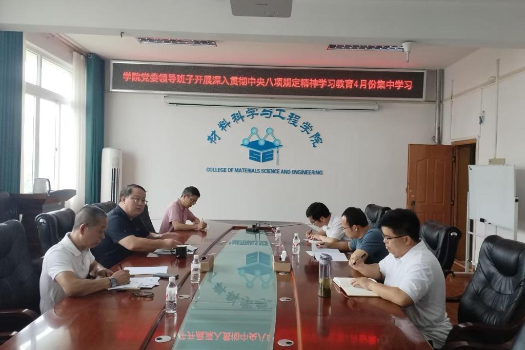 4月18日下午,学院党委领导班子开展深入贯彻中央八项规定精神学习教育4月份集中学习在2308会议室举行。会议由学院党委书记梁军主持。学院领导班子全体成员出席会议。