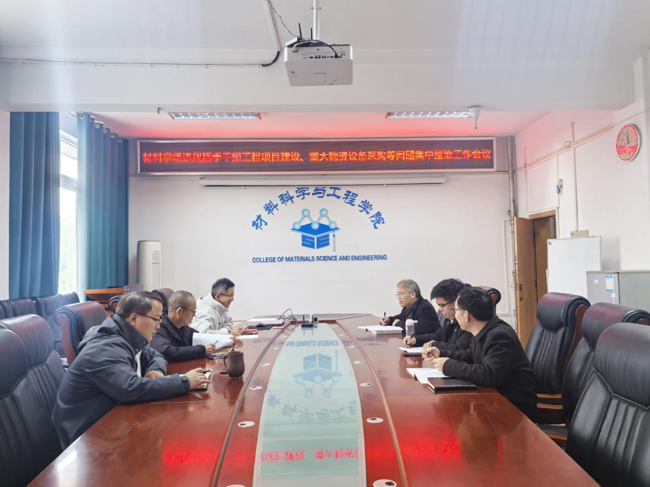 2025年12月5日,材料科学与工程学院在屏风校区2308会议室召开专项整治工作会议,重点围绕领导干部违规插手干预工程项目建设、重大物资设备采购等问题开展集中整治。学院全体领导干部参加会议,会议由学院党委书记梁军主持。