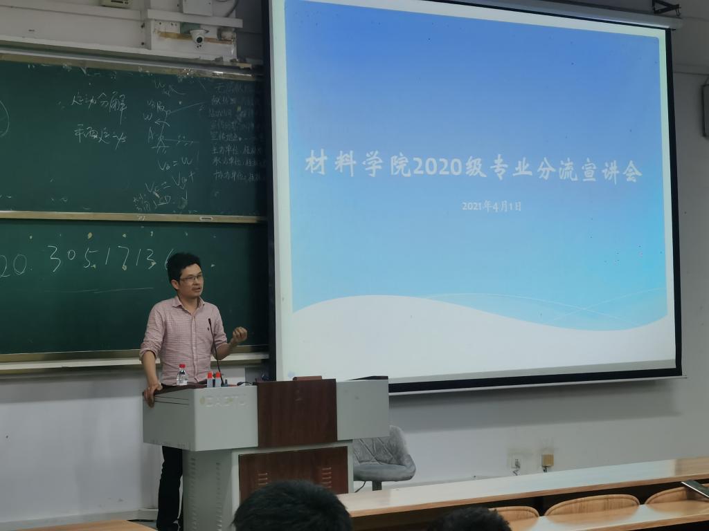为确保我院专业分流工作正常开展,4月1日晚,我院组织2020级学生开展2020级专业介绍会。学院副院长杨超教授、重点实验室副主任刘来君教授、冶金与金属材料工程教研室主任李义兵教授和亓海全副教授出席本次活动并对各个专业做了简要介绍,活动由20级辅导员陈信冰老师主持。