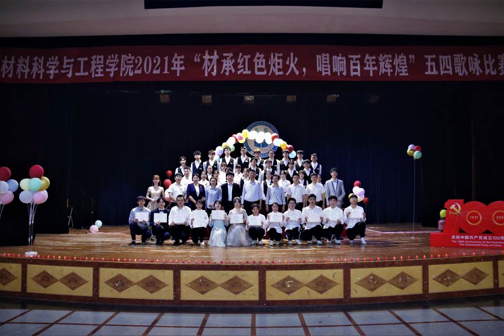 比赛在全体师生合唱团歌嘹亮的歌声中拉开了帷幕。比赛中,参赛学生精神饱满,意气风发,用歌声向我们表达了青年学子弘扬“五四”精神、勇担历史重任的决心,展现了当代学子积极向上、奋勇当先的精神风貌。在互动环节中,开展了党史知识竞答,同学们积极踊跃答题,展现了我院学子良好的精神风貌。经过激烈的角逐,最终无机19实验班、高分子19-2班、材料20-6班获得一等奖,无机18实验班、材料20创新班等五个班级获得二等奖,高分子18-1班、材料20-8班等8个班级获得三等奖,其余班级获得优胜奖,另外,比赛还评选出最佳创意、最佳指挥、最佳人气等奖项若干。