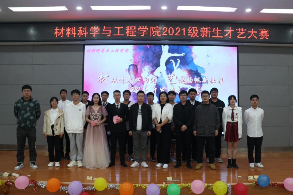 本次大赛大赛以“材展青春心向党,艺起扬帆新征程”为主题,充分结合今年建党百年迈入新征程的时代背景,体现了同学们青春向党的精神内涵。在主持人致开场白后,由消防车乐队的两首歌曲《披星戴月地想你》和《鹿befree》拉开了大赛的序幕,朗诵《桂工的梗》和相声《保险》令场上观众开怀大笑,舞蹈《solo》激动人心。过程中,20级助演嘉宾的歌曲及舞蹈点燃了大家的热情,将大赛氛围推向高潮。合唱《国家》婉转悠扬打动人心,比赛最后由尹贤彬老师献唱一首《水手》给大赛划上圆满的句号。经过评委老师的投票和评分,《姗姗》以高分荣获一等奖,《成都》及《父亲的散文诗》荣获二等奖,《迟迟》、《我害怕》、《老男孩》荣获三等奖,《solo》、《国家》、《桂工的梗》、《传闻》荣获优胜奖。经过线上投票,《桂工的梗》获得最佳人气奖。最后由各评委老师分别为获奖班级及选手颁奖并合影。