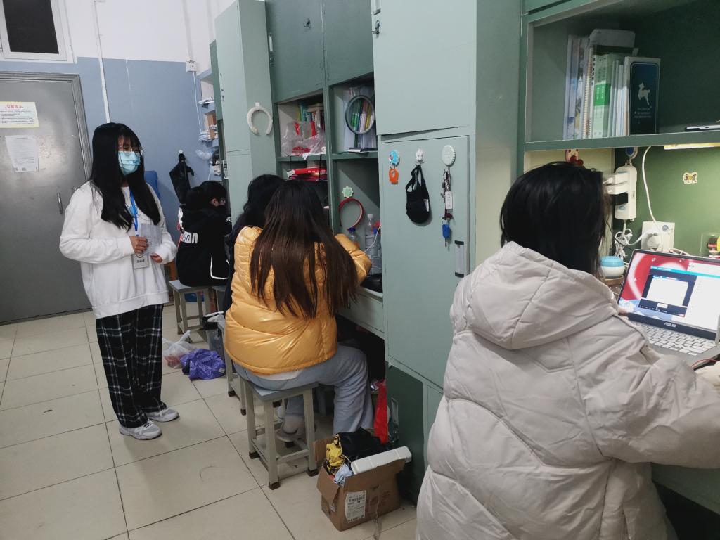 宿舍自我健康观测期间,老师们通过走访了解学生近期的生活状况,嘱咐学生要严格落实学校的疫情防控工作的相关要求,同时我院知行社,积极联系宿舍长,宣传防疫政策,并在每层楼设有楼层长两位,督促大家做好防护,提醒大家在宿舍要养成良好的生活学习习惯,把时间和精力更多的用在学习上;旨在为学生提供良好的服务工作。