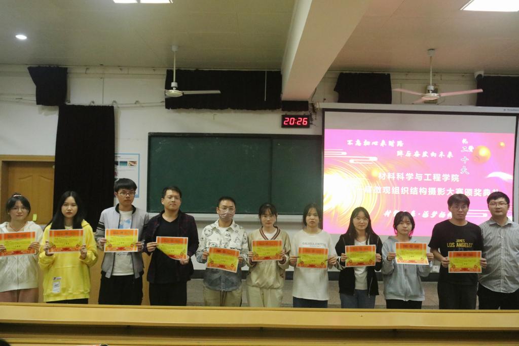 为庆祝党的二十大胜利召开,贯彻落实我院“材智未来·逐梦扬帆”计划,促进我院学风教风高质量发展,提升我院研究生创新意识,培养学生对微观世界的兴趣、提高仪器使用水平与艺术鉴赏能力,彰显材料人的精神风貌,我院成功举办了第十一届微观组织结构摄影大赛。为表彰先进,激励全体材料学子弘扬榜样精神,传承优秀基因,2022年11月8日,我院在屏风校区9101教室隆重开展了第十一届微观组织结构大赛颁奖典礼。