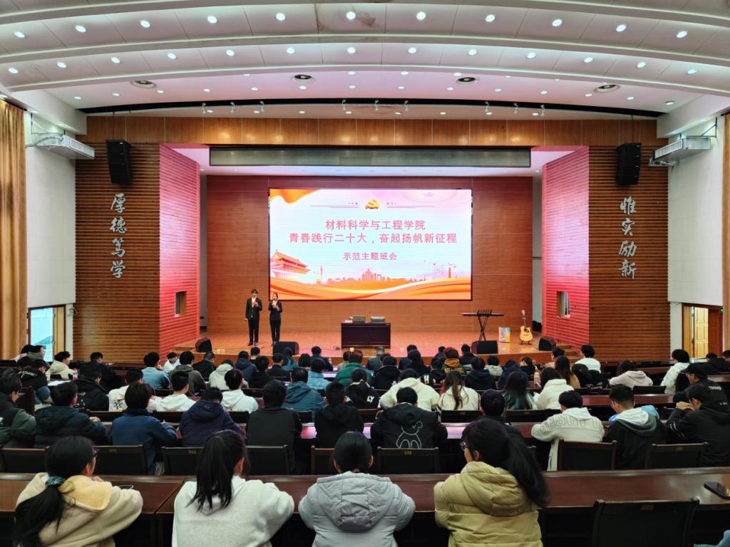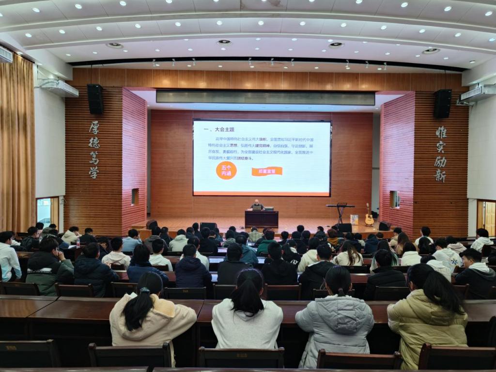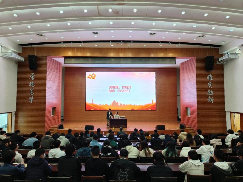 为持续学习宣传贯彻党的二十大精神,教育引导广大学生进一步坚定理想信念,学深悟透习近平新时代中国特色社会主义思想,2月26日上午,我院在屏风校区图书馆报告厅成功开展“青春践行党的二十大,奋起扬帆新征程”示范主题班会,班会邀请到了马克思主义学院副院长蒋晓俊老师、beats365亚洲版党委副书记徐时老师、beats365亚洲版2021无机实验班班主任姚迪圣老师出席本次活动。班会由2021级苏俊兴和苟海玲两位同学主持。