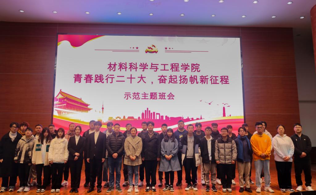 最后,学院党委副书记徐时老师作总结讲话。她先是代表学院向莅临本次班会的领导、嘉宾表示了热烈的欢迎,对筹备此次活动的同学表示了衷心的感谢。同时以《青春践行党的二十大,“材”能启航铸新篇—愿各位同学有“材”有“料”》为题向同学们提出了三点希望:一是希望同学们志存高远,肩负使命。二是希望同学们勤奋学习,砥砺奋进。三是希望同学们立德修身,开创未来。她指出,同学们作为未来的塑造者,肩负着国家强盛和民族振兴的使命。要努力抓住一切机遇,努力拼搏,站在新的起点上,续写人生新的篇章!
