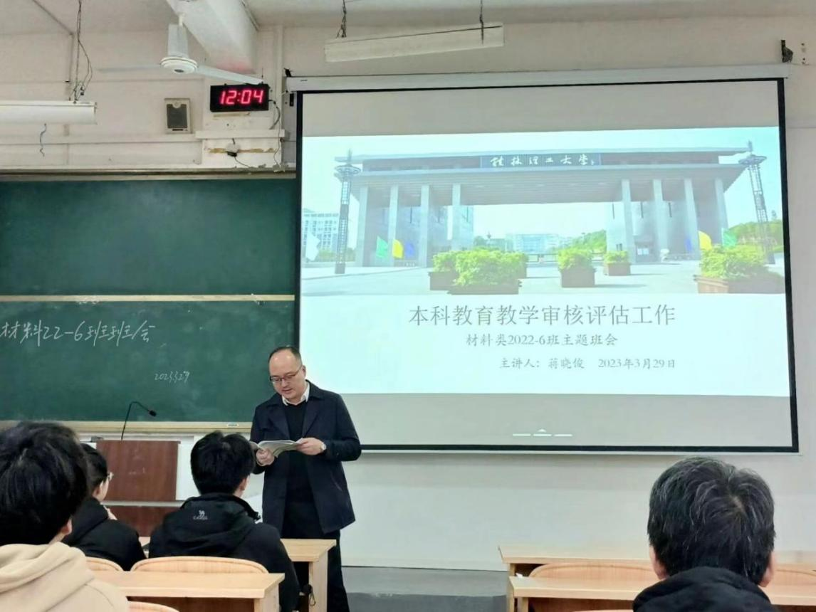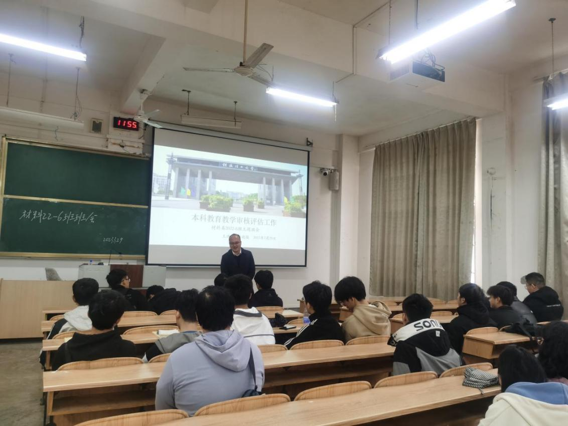 为全面贯彻落实党的教育方针,中共中央、国务院印发的《深化新时代教育评价改革总体方案》,培养德智体美劳全面发展的社会主义建设者和接班人,更好地迎接本科教育教学审核评估,展现材院学子优良的学风以及奋发有为的精神面貌,2023年3月29日,材料科学与工程学院材料类2022-6班围绕本科教育教学评估工作开展主题班会。