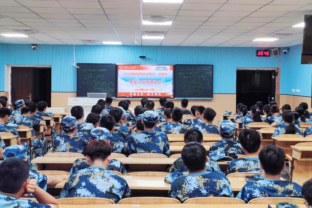 2023年9月20日,材料科学与工程学院2023级全体新生在雁山校区6栋教学楼参与了专业介绍会暨卓越工程师、拔尖创新人才遴选动员会,会议采取线上直播讲授、线下集中学习的形式进行,由学院副院长黄孝华教授主持,无机非金属材料工程教研室李优副教授、高分子材料与工程教研室李裕琪副教授进行专业介绍。