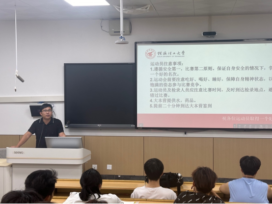 为充分调动运动员的积极性,确保运动会各项工作有序开展,10月31日晚,我院在雁山校区和屏风校区举行第五十二届校田径运动会动员大会暨安全教育大会。学院学工组组长单江涛、团委副书记卢桂盛,参赛运动员及工作人员参加了此次会议。