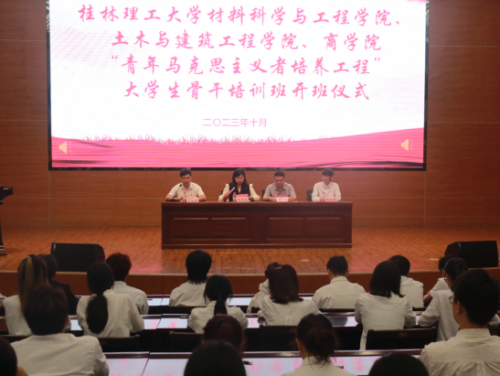 为深入学习宣传贯彻党的二十大精神,深入推进学校青年马克思主义者培养工程,进一步加强对青年大学生骨干的思想政治引领,10月29日我院在屏风校区图书馆报告厅举办材料科学与工程学院、土木与建筑工程学院、商学院“青年马克思主义者培养工程”大学生骨干培训班开班仪式。材料科学与工程学院团委书记赵思聪、土木与建筑工程学院团委书记张雪、商学院学生团委副书记陈锐彬以及全体青马班学员参加会议,会议由beats365亚洲版团委副书记卢桂盛主持。