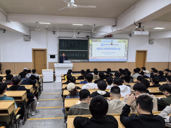 为帮助同学们更好地了解征兵政策,鼓励大学生积极投身军营报效祖国。12月11日晚,材料科学与工程学院在屏风校区9201教室召开征兵入伍宣传动员大会。学校武装部副部长黄海、2020级240余名同学参加本次会议,会议由学院2020级辅导员曲怀仁主持。