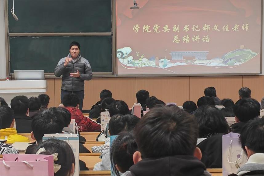 大会的最后,郝文佳书记上台做总结讲话。总结发言中围绕“投入、信仰、担当、执着、仰望”几个关键词与在场同学进行了深刻交流,他强调“学会选择,不断投入,珍惜时光,贵在坚持”是成功的秘籍,指出通过动员会缓解焦虑情绪、表达真诚祝福。希望同学们在今后的人生道路上,拥有仰望星空的能力,筑牢信仰的根基,投入精力去奋斗,执着创新,成长为具有担当精神的人,实现自己的人生目标和社会价值。他鼓励同学们稳定心态,保持良好作息,在未来的几天继续努力,在考场上沉着应考,考出自己理想的成绩。