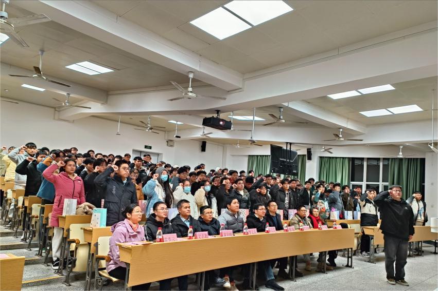 在宣誓环节,2024届全体考研学子攥紧右手放在耳边,在领誓人张远航同学的带领下高声宣誓,坚定表示一定不会辜负父母的期待和老师的厚望,以永不懈怠的精神状态和一往无前的奋斗姿态,决胜考场,拥抱充满无限可能的新时代。此刻他们呼出的不仅是心中的渴望,也喊出了材院考研学子必胜的决心。