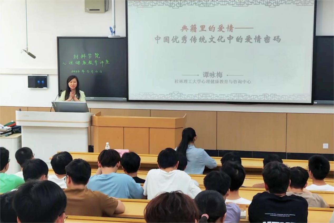 为树立大学生积极和谐的恋爱观念,培养良好的恋爱心态,掌握恰当处理恋爱困扰的方式方法,提升责任与担当意识,5月14日下午,材料科学与工程学院在屏风校区9113举办了“典籍里的爱情——中华优秀传统文化中的爱情密码”主题讲座。本次讲座由学校心理健康教育与咨询中心专职教师、“咏梅”工作室负责人谭咏梅老师主讲,学院辅导员唐丹婷老师主持。