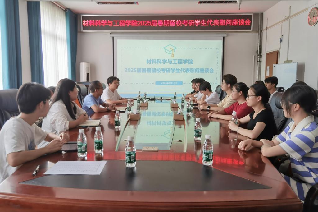 为持续做好考研备考服务保障工作,进一步了解暑期留校考研学生的学习动态与生活情况,鼓励暑期留校考研学生积极备考,持续做好暑期留校安全教育管理工作。8月12日,学院在屏风校区2308会议室召开2025届暑期留校考研学生代表慰问座谈会。学院党委书记梁军、2025届学生辅导员、2025届留校考研学生代表共同参加此次慰问座谈会。