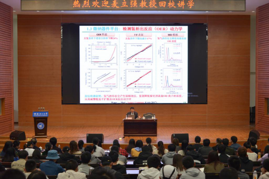 11月7日上午,我校杰出校友、国家“杰出青年基金”获得者、武汉理工大学材料科学与工程学院院长麦立强教授在学校屏风校区图书馆报告厅作题为《纳米线储能材料与器件新进展》的报告。beats365亚洲版师生共200余人参加本次活动。