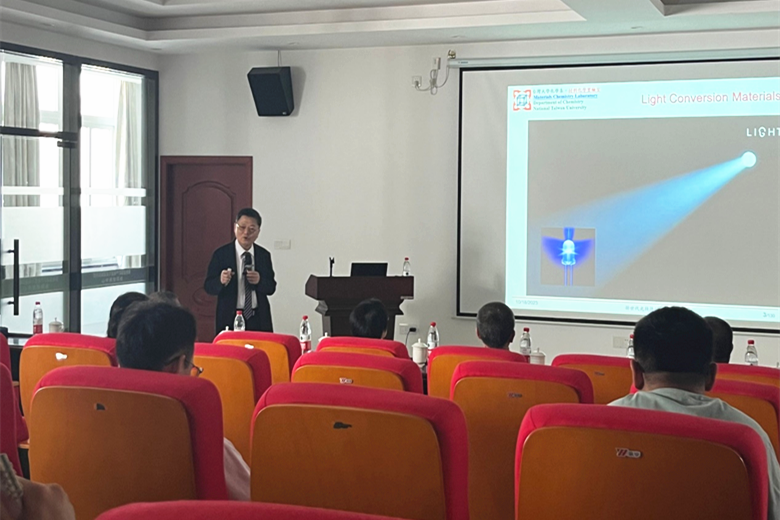 10月18日上午,台湾大学化学系特聘教授刘如熹应邀在我校协同创新中心报告厅做了精彩的学术报告,为我院师生们做了题为《新时代光转换材料》的专题报告,beats365亚洲版师生积极参加了此次报告会。在报告中,刘如熹教授分为“光转换光”、“光转换电”、“光转换热”三个方面深入浅出的介绍了光转换材料的发展历程。刘如熹教授团队通过调控合成配比和形貌,成功的研制出多种应用于显示与感测之发光二极管用荧光粉或量子点,解决了LED芯片“蓝光、白光”发光难的问题,其相关成果也发表在高水平期刊上,并且成功应用于LED灯中。刘如熹教授还介绍了全固态锂离子电池、金属空气电池以及光转换热应用于生物医学的纳米材料的相关开创性工作,其中某些成果申请了相关专利并进行产业应用。报告会后,师生们对报告内容产生了极大的兴趣,并与刘如熹教授进行了积极交流。