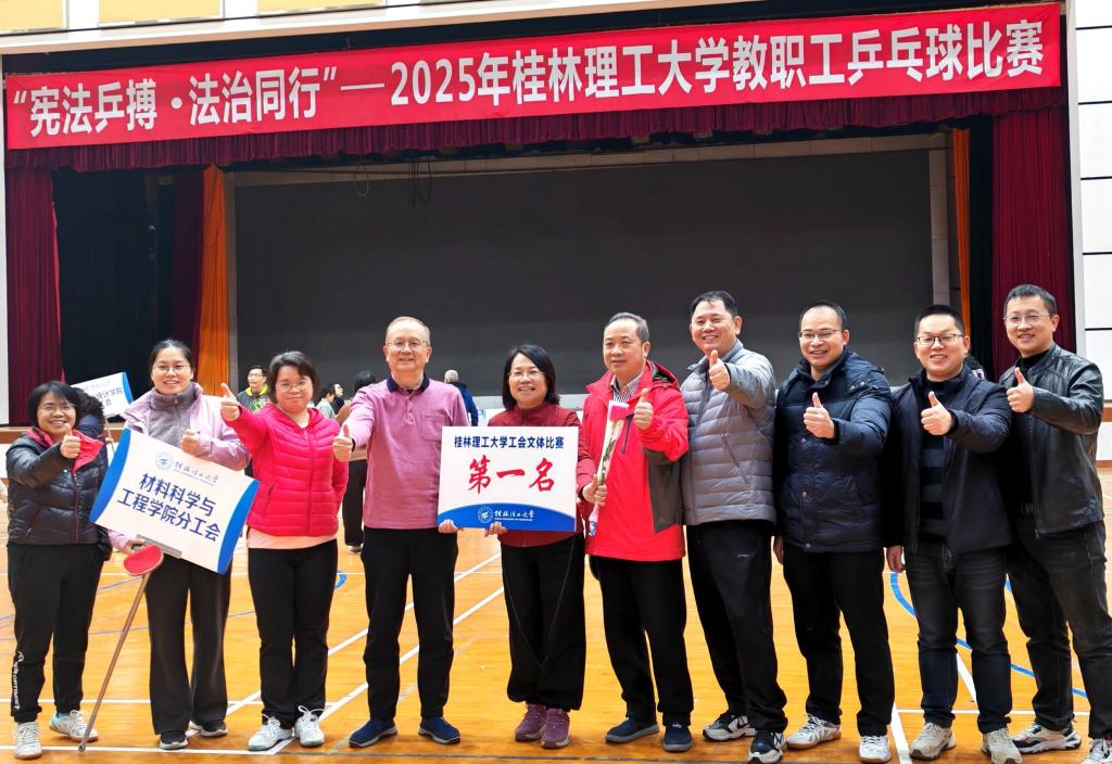 2025年12月3日,由校工会组织的“宪法乒搏·法治同行”2025年桂林理工大学教职工乒乓球团体比赛圆满落下帷幕。beats365亚洲版分工会凭借出色表现脱颖而出,荣获团体第一名。