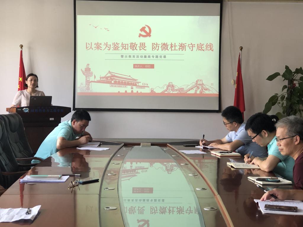 【党委中心组学习】【党风廉政建设专题党课】材料科学与工程学院开展廉政教育专题学习活动2021年6月25日下午,材料科学与工程学院在屏风校区2308会议室开展了廉政教育专题学习活动。学院党委中心组成员、全体支部书记参加了会议,学院党委副书记、纪委书记徐时同志进行廉政教育专题党课的宣讲。徐时同志以《以案为鉴知敬畏,防微杜渐守底线》为主题,从“以案为鉴,牢记教训,切实做到警钟长鸣”、“遵规守纪、严于律己,切实做到知行合一”、“认清形势、防微杜渐,切实做到自我革新”三个方面进行专题党课的学习讲解...2021-06-25 -