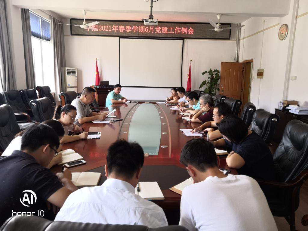 【党建月例会】学院召开2021年春季学期6月党建工作例会6月25日下午,学院在2308会议室召开2021年春季学期6月党建工作例会。学院党委书记李治同志主持会议,学院党委委员、师生支部书记参加会议。会上,李治同志传达了学校6月党建工作例会内容,就学院近期党建工作进行了部署,并着重强调了党史学习教育专题组织生活会、第二批基层党建工作品牌项目创建培育、“八桂先锋”优秀作品(课件)征集和评选等工作要求。李治同志强调,党史学习教育要注重融入日常、抓在经常,不断丰富党史学...2021-06-25 -