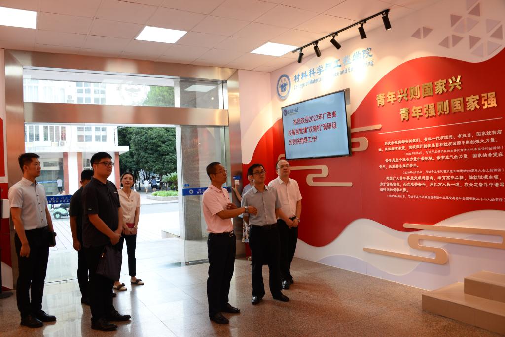 自治区党委教育工委调研组到我院巡查指导全国党建工作样板支部创建培育情况8月26日下午, 教育工委黄中阳部长到我院现场巡查指导全国党建工作样板支部创建培育情况,学校党委常委、组织部部长唐壮东,学院党委书记梁军陪同巡查。黄中阳部长参观了学院党建文化、清廉文化和校园文化的宣传阵地,听取了我院推进全国党建工作样板支部创建培育的基本情况。黄部长对我院样板支部建设情况给予了高度评价,认为思路清新、目标明确、举措有效。同时,他也指出:全国样板支部的创建培育是一项长期而艰巨的任务,...2022-08-26 -