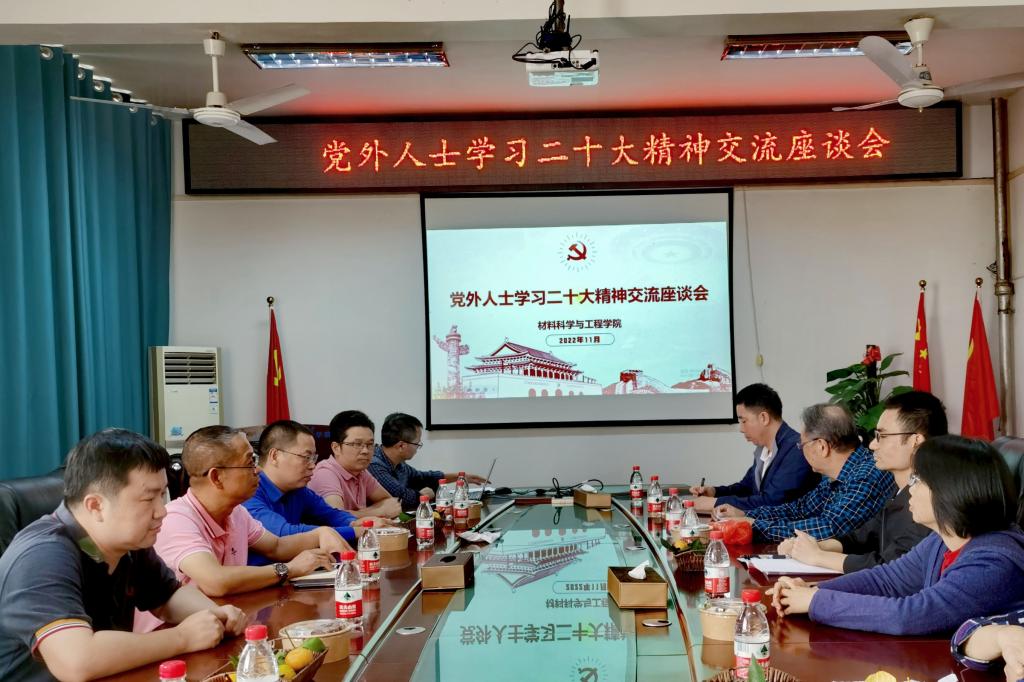 材料科学与工程学院组织召开党外人士学习党的二十大精神交流座谈会为全面学习贯彻党的二十大精神,2022年11月7日,材料科学与工程学院在屏风校区2308会议室组织召开党外人士学习党的二十大精神交流座谈会,会议由学院党委统战委员王茗主持,学院党委书记梁军及党外人士代表出席会议。会上,各党外人士代表热切交流了党的二十大精神学习心得。陆绍荣教授首先作了题为《科技服务基层助力乡村振兴——纳米硒生物微肥应用研究》的专题报告。他指出,只有深入基层、深入乡村开展调研,才能真正了解基...2022-11-07 -