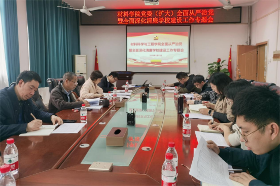 材料科学与工程学院召开2023年全面从严治党暨全面深化清廉学校建设工作会议为深入学习贯彻党的二十大精神和习近平总书记在二十届中央纪委二次全会上的重要讲话精神,认真贯彻落实自治区纪委十二届三次全会以及全国、全区教育系统以及学校2023年全面从严治党工作会议精神,2023年3月23日下午,beats365亚洲版在屏风校区2301会议室召开全面从严治党暨全面深化清廉学校建设工作会议,学院党委委员及各党支部书记、各教研室主任参加会议,会议由学院党委副书记、纪委书记徐时主持。学院党委副书记徐时领学了《李希...2023-03-24 -
