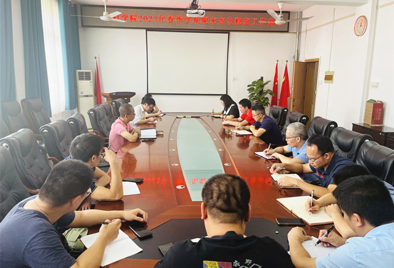 学院召开期末安全稳定工作会议7月6日下午,我院在2308会议室召开期末安全稳定工作会议,学院党委书记梁军、副院长王茗、副院长张瑞、副院长黄孝华、党政办、学工办、实验中心负责人及各教研室主任参加会议,会议由梁军书记主持。 会上,梁军书记传达了学校安全稳定工作会议的精神,并结合学院实际情况,研判了安全隐患及风险点,并对教学、科研、党建、就业、社会实践、假期留校学生管理等工作进行布置。会议期间,学院分管领导针对分管工作的推进落...2023-07-07 -