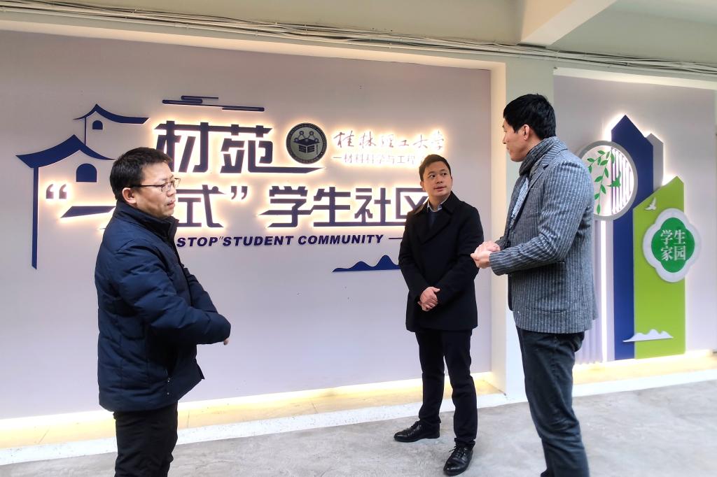 我校组织部副部长邓炼一行调研指导材苑“一站式”学生社区建设为深入学习贯彻党的二十大精神和习近平总书记关于教育的重要论述,全面落实教育部“一站式”学生社区综合管理模式建设工作任务,高质量服务学生成长成才。2023年12月18日,学校组织部副部长、人才办副主任邓炼、宣传部副部长雷绍湖一行实地走访屏风校区材苑“一站式”学生社区,材料科学与工程学院党委副书记郝文佳和学院全体辅导员陪同。郝文佳对材苑“一站式”学生社区建设工作的基本思路、总体规划和下一步计划作了简要汇报...2023-12-19 -